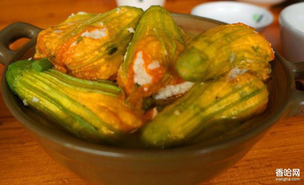 南瓜花釀:是賀州客家特色菜肴,味道鮮美清甜,屬家常菜譜