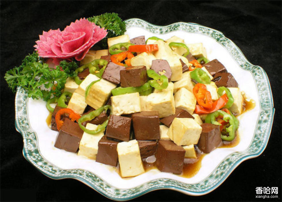 入豆腐和雞血,再燒開(kāi)后用淀粉勾汁出鍋,撒上點(diǎn)香菜、味素即成。