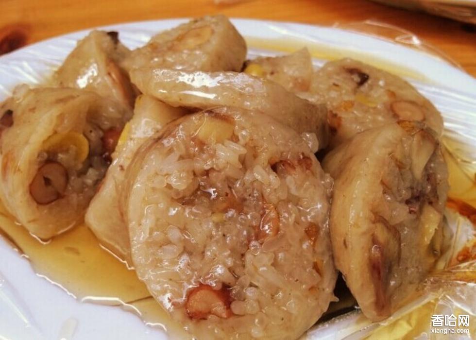 豬腸脹糯米是潮汕地區(qū)一道有特色小吃,味道很傳統(tǒng),其風(fēng)味獨特,古往今來,傾倒了多少食客。一盤切成薄片的豬腸脹糯米,外加幾瓶啤酒,慢慢品味,那是十分愜意的。