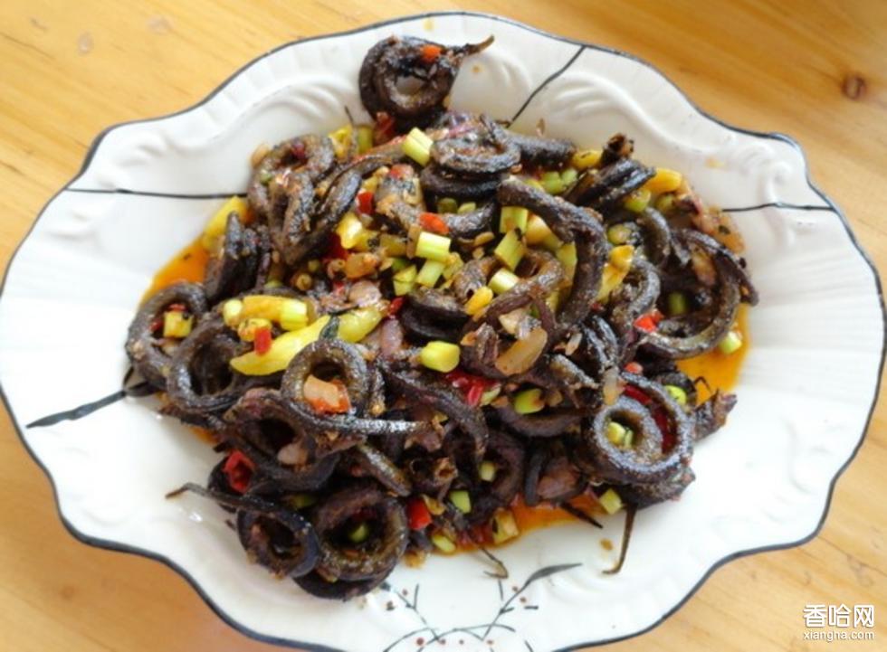 1,鍋里放油(油多少以全部淹沒(méi)黃鱔為準(zhǔn))六——七成熱時(shí)把活的黃鱔放在鍋里直至盤(pán)起就起鍋