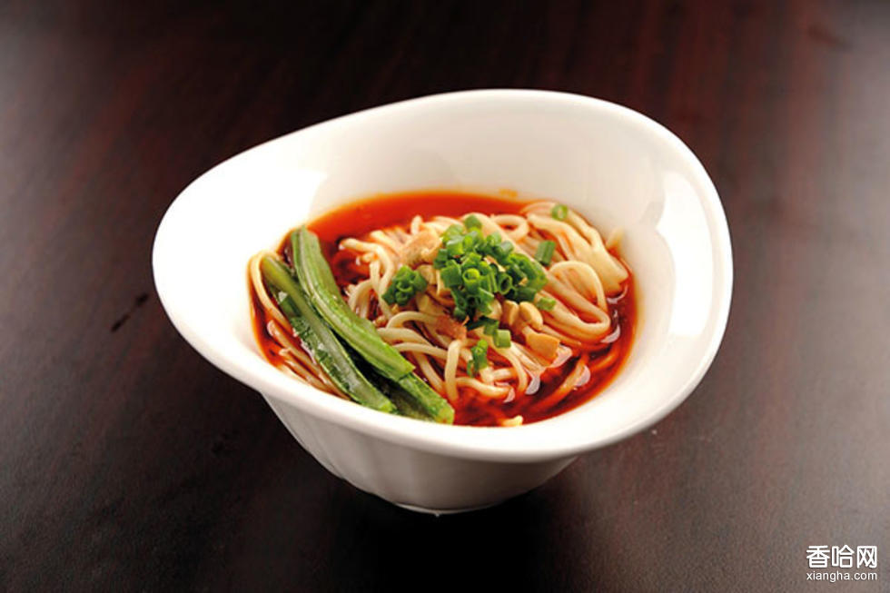 制作原料:圓細(xì)面條500克,辣椒油、醬油、蔥各50克,芝麻醬35克,味精2.5克,川東菜100克,化豬油、香油各20克。