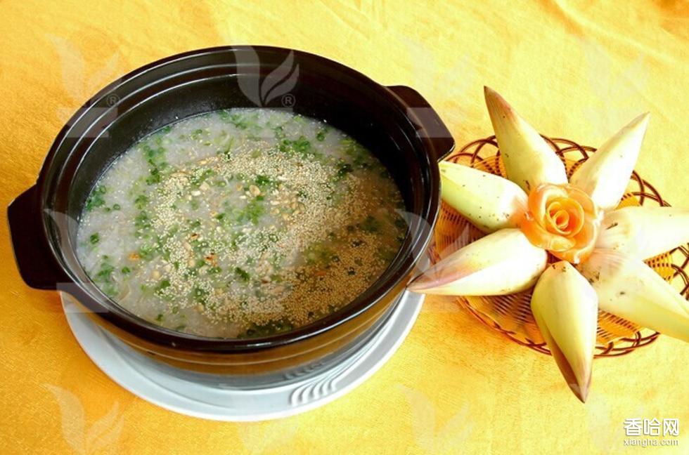 蕉蕾粥,粥色奶白,粥氣清香,味感鮮甜,是一款沙田風味的靚粥。新鮮爽口的蕉蕾不僅好吃,而且還有很高的食補功效,除了含有大量蛋白質、維生素外,還能解濕毒、潤胃腸。