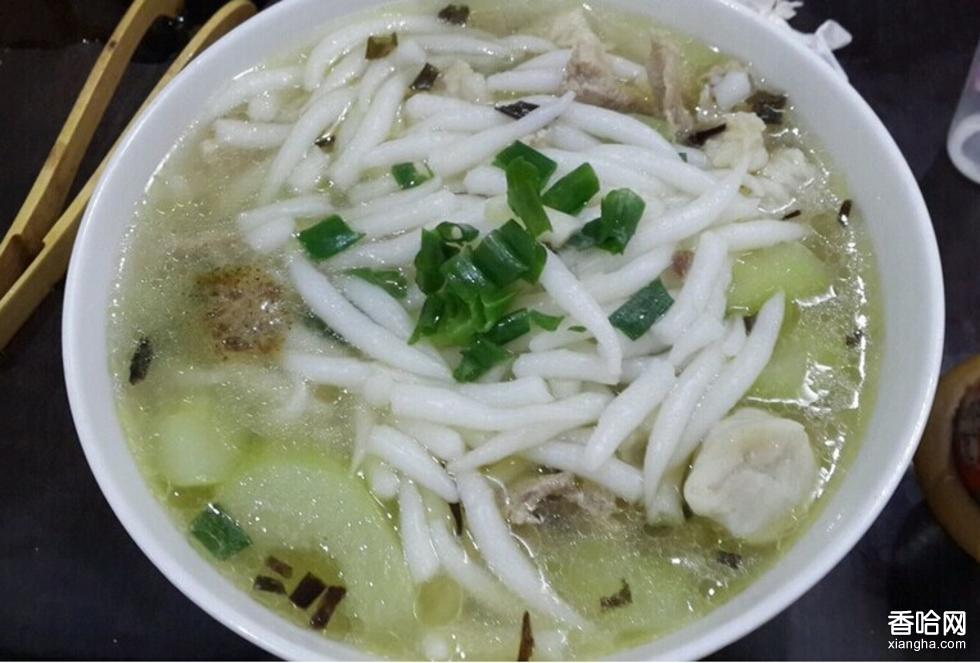 尖米丸是廣東潮汕地區(qū)著名的漢族小吃,是用潮汕優(yōu)質(zhì)稻米做成的圓形兩頭尖的米類小吃。糯米、尖米,均為大米。平時潮汕人煮飯吃的米,潮人俗稱“尖米”。烹調(diào)工藝講究“清、鮮、巧”風(fēng)格。丸體佐料保持新鮮,先將丸體在清沸水中泡過,再匯入滾燙的豬骨原味湯,加上肉片、魷魚、墨魚脯、蝦仁之類佐料,調(diào)以魚露、胡椒粉之類配料,最后,在清湯面上撒下幾片青翠的香菜或蔥珠,與潔白的丸體和鮮艷的肉片,構(gòu)成和諧的色調(diào),清美的味道,美觀的造型。