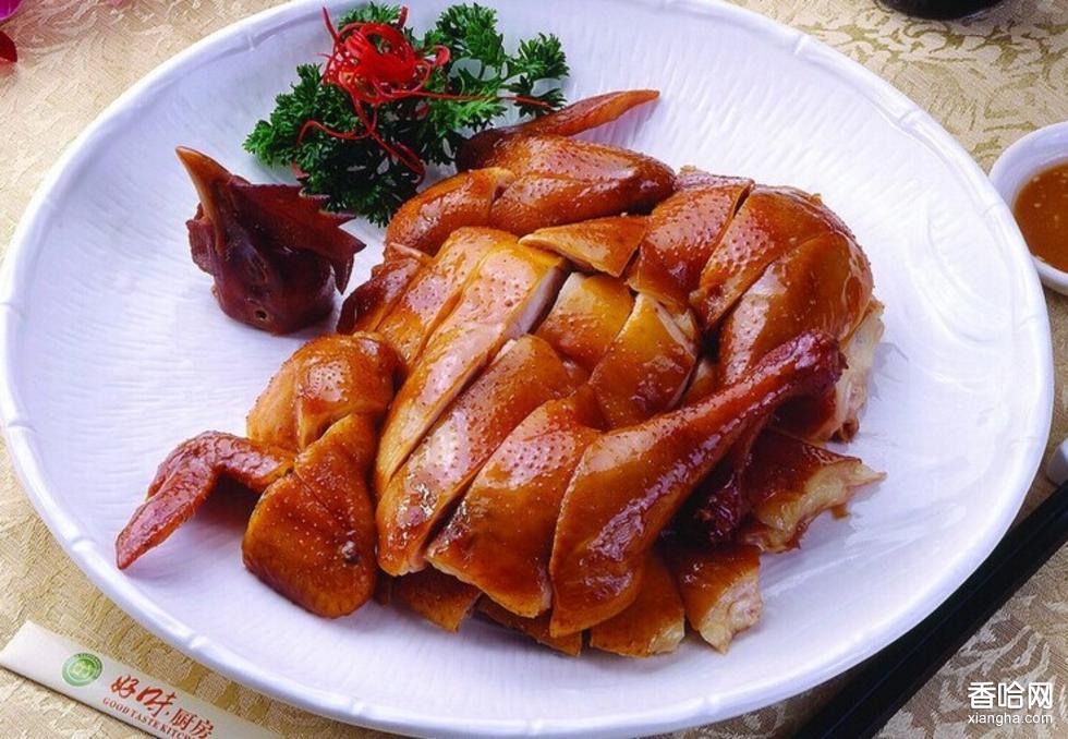豆醬雞是廣東潮汕地區(qū)別具特色的漢族傳統(tǒng)名肴,現(xiàn)為廣州南園酒家的招牌名菜,并在嶺南及港澳地區(qū)廣泛流傳??鬃印墩撜Z》曰:“不得其醬不食”,善于用醬,是廚藝的一個關(guān)鍵,“豆醬雞”的醬料,選用普寧所產(chǎn)的豆瓣醬,并加芝麻醬、糖等,調(diào)勻而成,這種醬料味醇而辛香,用以烹制的雞,皮色金黃,肉質(zhì)嫩滑,鮮香濃烈。