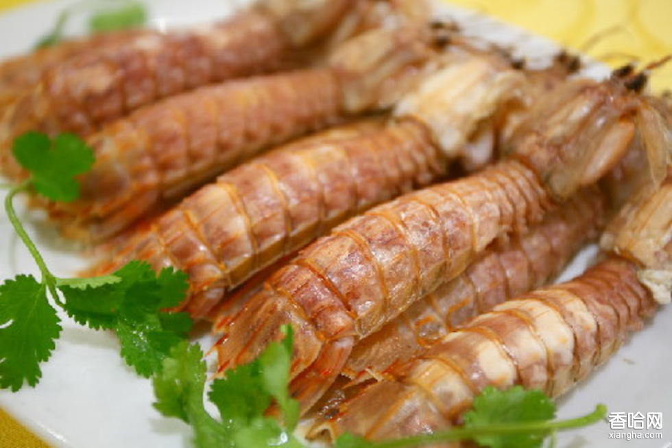 北海盛產(chǎn)三十多種蝦,以對(duì)蝦出名。對(duì)蝦個(gè)體大,肉肥味鮮,營(yíng)養(yǎng)價(jià)值很高,是北海人最愛(ài)吃的海產(chǎn)品之一。北海人吃蝦很講究,喜歡吃活蝦、吃天然蝦(北海人叫捕撈蝦)、吃白灼蝦。他們到了餐館,先到飼養(yǎng)水池邊看蝦,首選大明蝦或花蝦,并聲明養(yǎng)殖蝦退貨。為會(huì)么要吃活蝦?北海有句俗語(yǔ),"魚(yú)蝦蟹,死了就臭",為什么要吃天然蝦?北海人有個(gè)比喻,天然蝦跟養(yǎng)殖蝦,好比家雞和飼料雞。為什么要白灼?白灼蝦原汗原味,味鮮、爽口、脆滑,吃了不上火,餐館老板也充不了假。死蝦充不得,因?yàn)樗牢r白灼后不但味不正,而且頭是黑色的;養(yǎng)殖蝦也充不得,養(yǎng)殖蝦白灼后顏色鮮紅,天然蝦顏色較淡,一看就清楚???