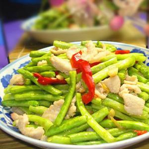 做法一:長(zhǎng)豆角炒肉