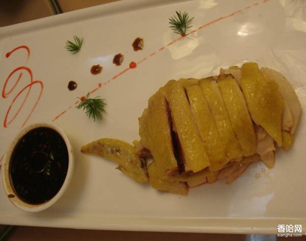 廣西平南縣著名傳統(tǒng)佳肴。素以鮮美、軟滑、幼嫩、甘香等特色聞名。制作工序:選用約一點(diǎn)二五千克左右的平南三黃項(xiàng)雞,宰殺后,取出內(nèi)臟,再用生鹽抹擦雞身備用;將水燒至微開,將雞放入煮三分鐘后起鍋置于盆中,并將煮雞的開水倒入盆內(nèi)蓋好,約二十分鐘即熟。然后用熟花生油均勻涂抹于雞皮上,切塊上碟。食用時(shí)佐以生曬醬油、蔥花、蕪荽等調(diào)料。