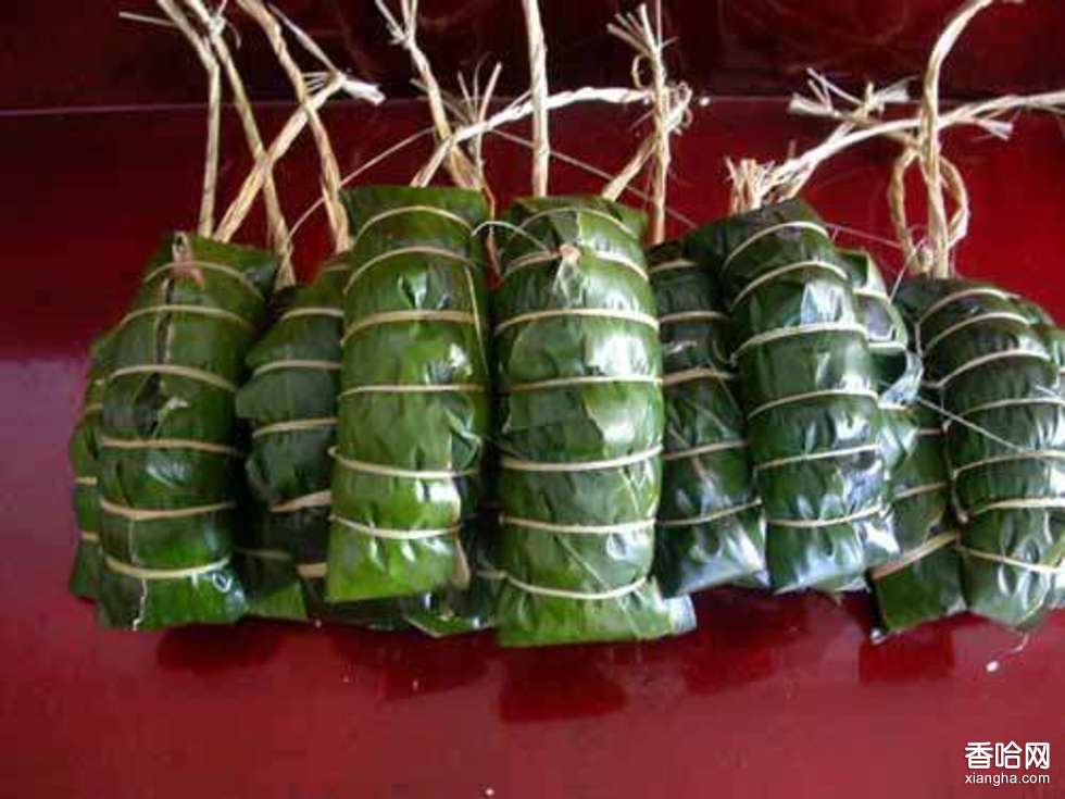 民間節(jié)日食品。將稻草燒成灰,用濾出來的水浸泡糯米,使米烏黑。把精選的五花豬肉切成小長條,加上三花酒、五香粉、精鹽等佐料,連同綠豆、板粟,包在中間為餡,便成為美味可口的黑肉粽。