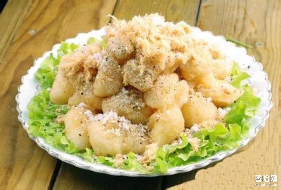 滬州五香糕,炸點(diǎn),是四川省瀘州市著名的漢族小吃,其前身是民間油糍粑,已有60多年歷史,冷、熱均可食用,風(fēng)味別具一格。