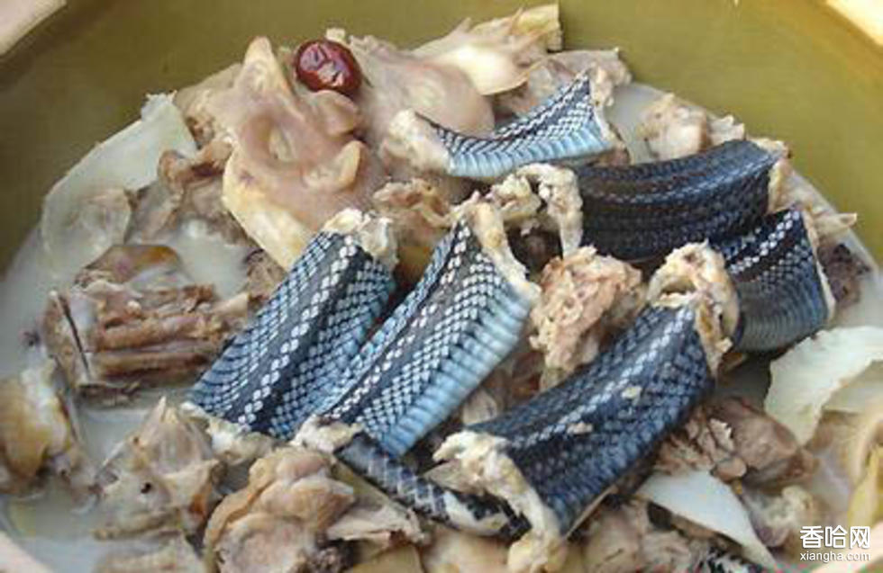 此菜由五蛇、雞、果子貍、木耳、平菇、魚(yú)肚、鮑魚(yú)及多種調(diào)料組成,具有滋陰補(bǔ)腎、驅(qū)風(fēng)祛濕的功效。將雞的滋補(bǔ),鮑魚(yú)的強(qiáng)腎,蛇肉的驅(qū)風(fēng)濕,魚(yú)肚的益精補(bǔ)髓,木耳的通脈祛瘀,平菇的抗癌,果子貍的滋補(bǔ)等功效融合貫通,可治風(fēng)濕性關(guān)節(jié)炎、半身不遂、癱瘓等癥。常食能容顏健美,延年益壽。