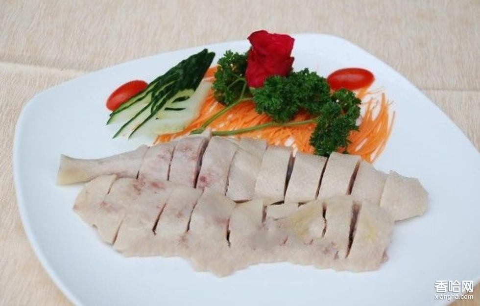 番薯鴨是防城港的一種優(yōu)質(zhì)土鴨,肉質(zhì)鮮美細(xì)膩,骨細(xì)肉多,香脆可口。國(guó)宴樓廚師根據(jù)防城港本地人偏愛(ài)原汁原味的喜好,制作出別具防城港特色的白切番薯鴨,并配以檸檬、香油等蘸料,味美鮮香,分外可口。