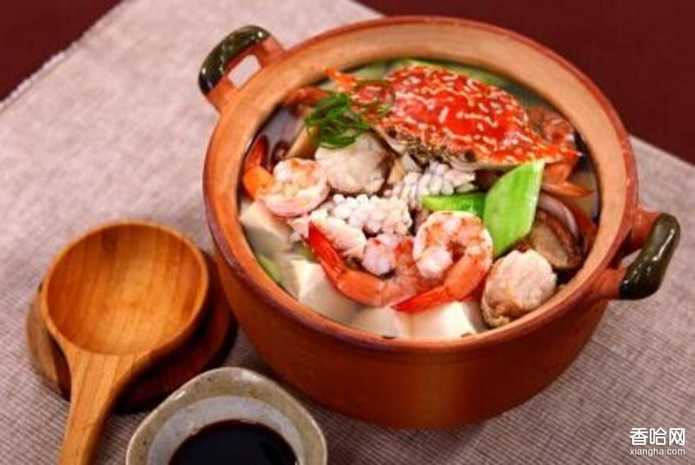 將魷魚(yú)、海參、魚(yú)皮、香菇用開(kāi)水焯好。蝦肉、鮮貝用淀粉上漿。黃瓜切滾刀塊,南豆腐用水稍煮。起鍋放油燒熱,將鮮貝、蝦肉入鍋滑散撈出。鍋留底油將主、配料投入鍋中,放調(diào)料、雞湯燜約5分鐘,同時(shí)將南豆腐放入沙鍋,國(guó)內(nèi)“八仙”用濕淀粉勾芡,加黃瓜倒入沙鍋即可。