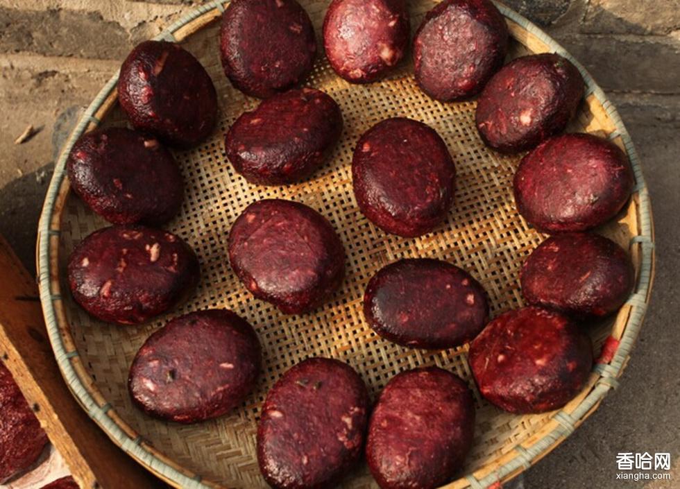 4.逐個(gè)將丸子外面粘上一層鮮豬血,平擺在木板上,放太陽(yáng)下曬干(要曬二三天,如怕變質(zhì),可烘干)即成。