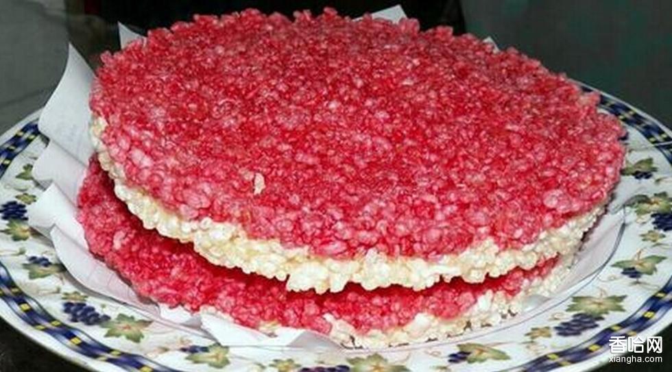 是用糯米飯制成的,其制作方法是將糯米淘洗數(shù)次,放置清水中浸泡發(fā)脹后,分成兩半,其中一半拌上食品紅,一并置于甑內(nèi)(中間用隔板間開(kāi))蒸熟。然后取出攤在一個(gè)碗口大小的篾箍?jī)?nèi),使之粘合平整均勻。每個(gè)米花約1cm厚,由紅、白兩層組成,上層為紅米飯。將做好的米花擺在篾墊或木板上,放在陽(yáng)光下曬干。白色底層若碎玉鋪就,紅色面層如瑪瑙嵌成,遠(yuǎn)遠(yuǎn)看去,像艷麗的花朵,故稱之為“米花”。