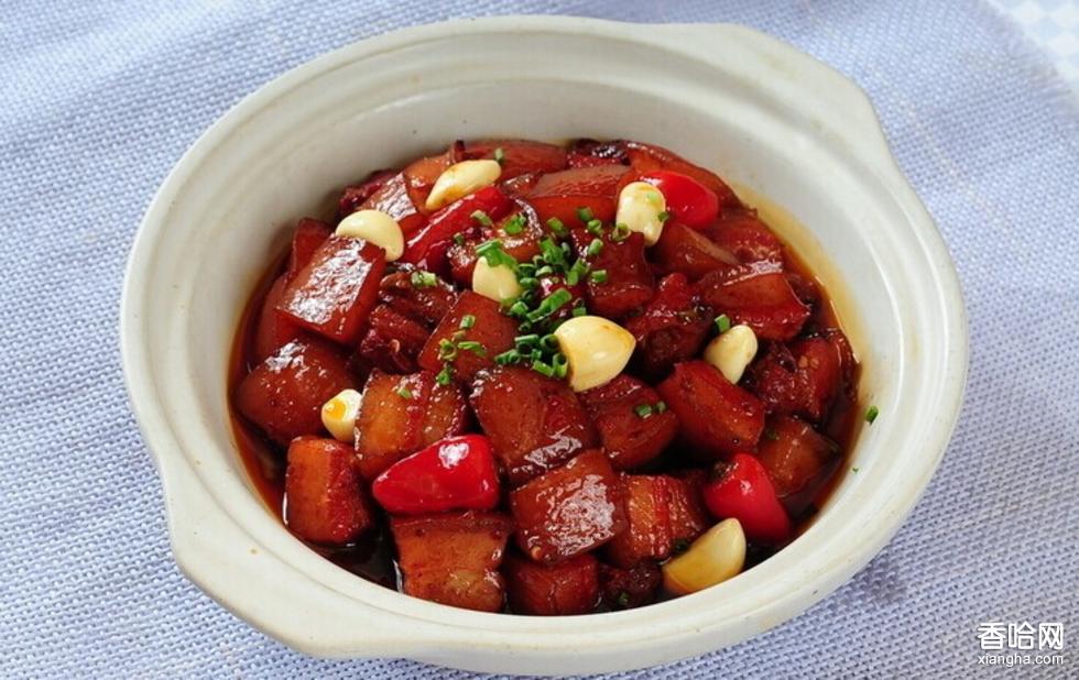 毛家菜因毛主席故鄉(xiāng)而聞名,毛家紅燒肉主席贊不絕口。正宗的毛家飯店位于湘潭韶山?jīng)_,這里的紅燒肉選的是五花腩,把五層三花的肚腩肉用冰糖八角桂皮先蒸再炸后入鍋放豆豉作料,做法非常講究和復雜。做好的毛家紅燒肉色澤金黃油亮,肥而不膩,十分的香潤可口。
