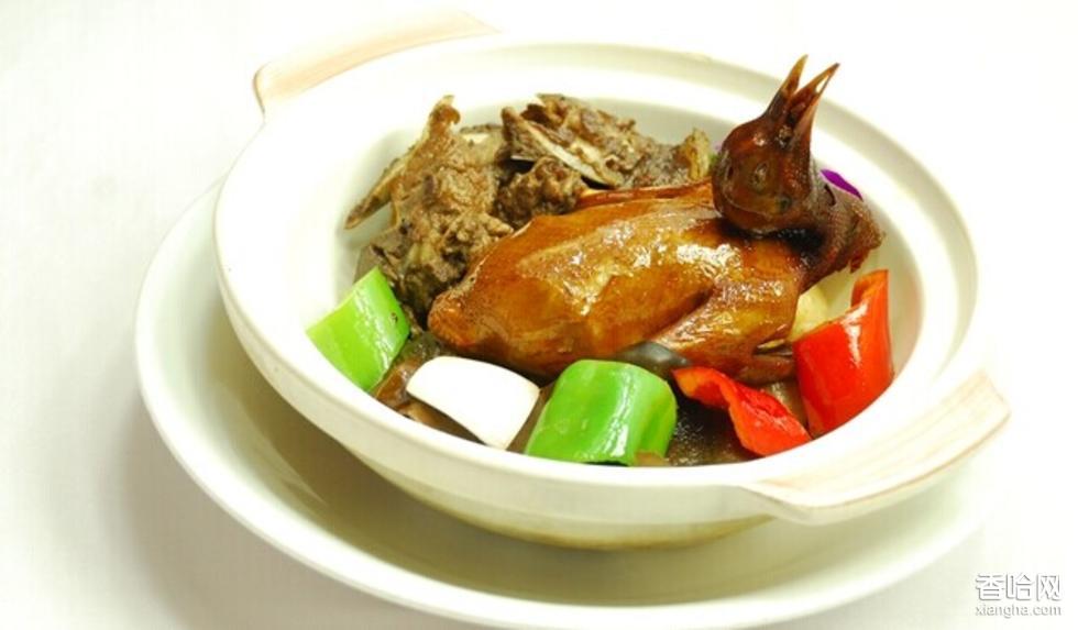 草菇焗乳鴿是一道色香味俱全的漢族名菜,屬于湘菜系。此菜味濃香,肉嫩滑,是季節(jié)時令菜肴。將鴿宰好洗凈晾干,用醬油加濕生粉,涂抹在鴿身上。起油鍋把乳鴿炸至金黃色撈起,干草菇浸洗干凈擦干水,略炸撈起,鏟凈油鍋,投入草菇、鴿、姜、蔥,濺紹酒,加入清湯、幼鹽、醬油、紅椒,加蓋。爐火先武后文,焗至存原250克,取出乳鴿斬件擺落碟,砌成鴿形,草菇圍碟邊。紅辣椒切絲投入原汁加入味精,下濕生粉打芡,加入麻油、尾油淋在鴿上,火腿片放在鴿上。