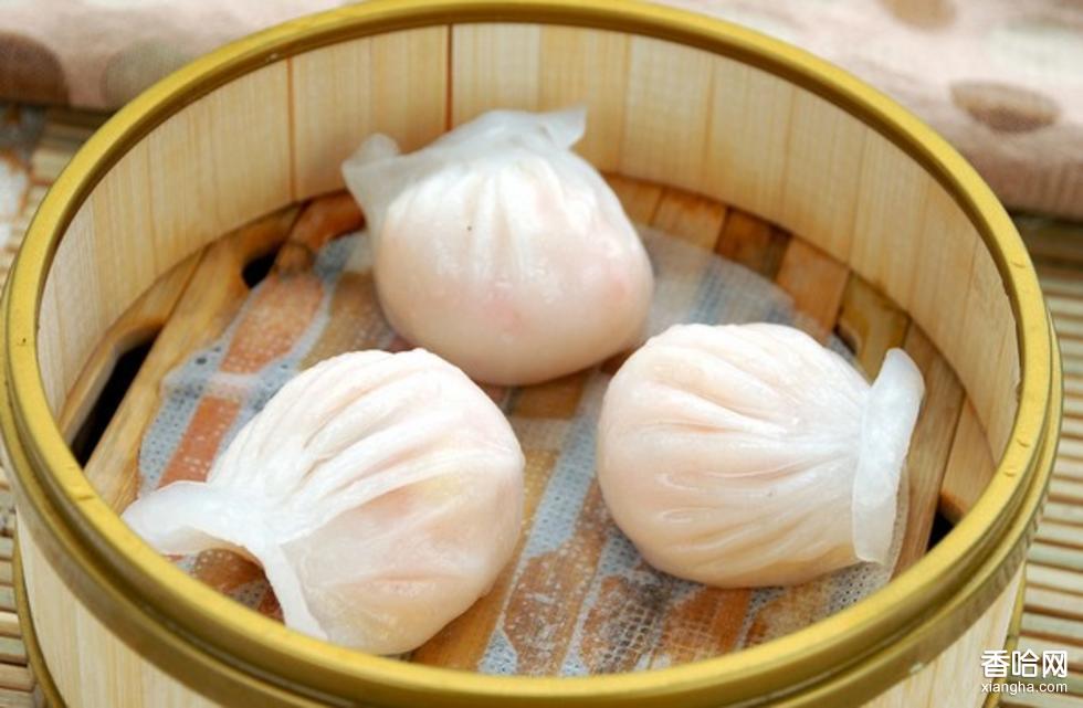 蝦餃在制作上較為講究,將澄面、生粉制成蝦餃皮;鮮蝦洗凈去殼吸干水分壓爛攪拌成肉膠,肥肉切成細(xì)粒,用開水燙至剛熟,再用清水浸過,使肥肉既爽而又不致出油;加入雞蛋白、細(xì)筍絲、味粉、麻油、胡椒粉等配料,經(jīng)冷凍后制成蝦餃蒸熟。蝦餃片薄而半透明,皮內(nèi)鮮餃餡料隱約可見,形似一梳香蕉。由于外形美觀,味道鮮美爽滑,美味可口,深受海內(nèi)外食客贊譽。近十年推出的雞粒蝦餃、蟹黃蝦餃等新品種更受食客的青睞。