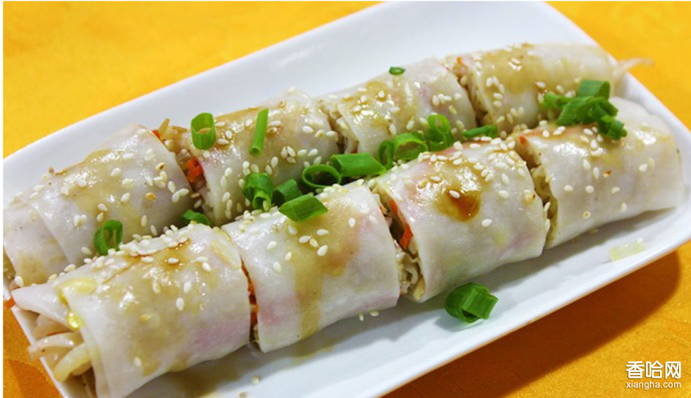 豬腸碌與粉卷相似,但餡是有豆芽、炒河粉等做成的,以整張的河粉作皮來(lái)包裹。它類(lèi)似平時(shí)吃的粉卷,用米粉皮包著芝麻、豆芽、蝦皮、蛋皮等?,F(xiàn)在的商家聰明了,加入了不同材料進(jìn)去,例如叉燒、牛腩、火腿等等。吃的時(shí)候可整條吃,也可以切成小段,再沾上特殊的調(diào)料(如辣醬),味道咸中帶香,十分可口。還有些沾上牛腩汁,味道更足。