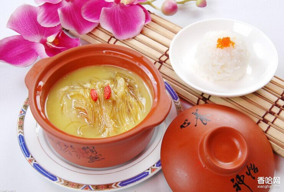 2.煨制注意掌握火候,長時間煨制4小時左右,使味汁逐漸滲入主料。檢驗的方法是:用筷子挾翅針的中間,兩頭下垂即可。