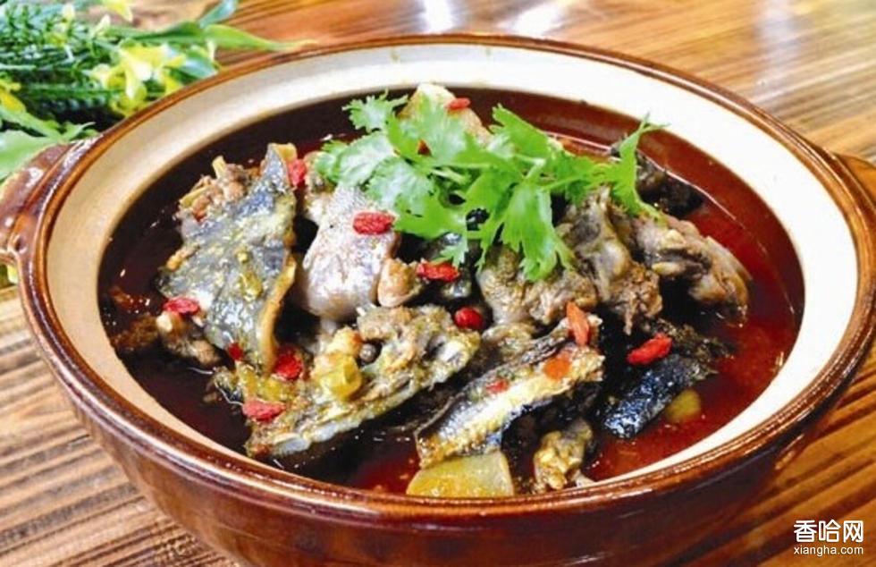 冬瓜鱉裙羹是一道湖北的漢族傳統(tǒng)美食。是以鱉(又稱甲魚、團(tuán)魚、腳魚)的裙邊和嫩冬瓜一起煨制的一種湯,鱉裙軟嫩,湯汁清純,冬瓜清香,原汁原湯。