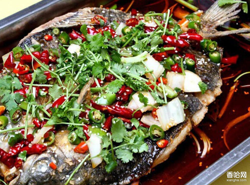制作步驟:1、 魚殺后去鱗,從背部開刀,去內(nèi)臟洗干凈,打一字花刀,加料、鹽、味精各5克,腌10分鐘。2、魚上烤架烤10分鐘到九成熟,刷一層老油(可根據(jù)實(shí)際操作情況改變刷油的次數(shù),一般掌握在兩次最好,第一次在魚烤到5到6成熟時刷,第二次在即將烤熟時刷,這樣可以保證油的香味充分進(jìn)入魚肉中),撒孜然粉再上烤架稍微烤1分鐘,裝入墊有洋蔥絲的不銹鋼盤備用。3、炒鍋放混合油(豬油和植物油各一半)一兩,下姜蒜豆瓣醬、永川豆,中火炒香加剩余的老油,鮮香雞膏,鮮湯,再下入雞精 白糖調(diào)味,最后下芹菜節(jié)、黃瓜節(jié)大火燒開倒在裝魚的盆中4、另起鍋放混合油30克,燒到五成熱下干辣椒、干花椒中火炒香,淋在魚上加香蔥絲 香菜 紅椒絲點(diǎn)綴即可