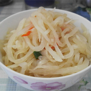 1、將白蘿卜、洗凈,切成細(xì)絲。