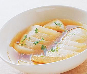4、白蘿卜可生食,炒食,做藥膳,煮食,或煎湯、搗汁飲,或外敷患處。烹飪中適用于燒、拌、做湯,也可作配料和點綴。