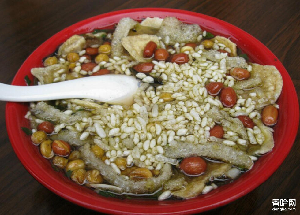油茶湯對(duì)土家族人來(lái)說(shuō)一日三餐少不了。土家油茶湯是湖北省恩施土家族苗族自治州土家族具有代表性的文化現(xiàn)象之一,土家語(yǔ)稱(chēng)“色斯?jié)缮场?,堪稱(chēng)中國(guó)茶文化一絕,源遠(yuǎn)流長(zhǎng)。據(jù)清代的《來(lái)鳳縣志》記載:“土人以油炸黃豆,包谷,米花,綠焦諸物,取水和油,煮茶葉和湯泡之,餉客致敬,名曰:‘油茶’”。