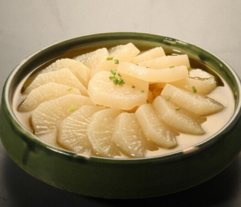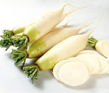 白蘿卜是根菜類的主要蔬菜,屬十字花科蘿卜屬的二年生植物。白蘿卜是一種常見的蔬菜,生食熟食均可,其味略帶辛辣味?,F(xiàn)代研究認(rèn)為,白蘿卜含芥子油、淀粉酶和粗纖維,具有促進(jìn)消化,增強(qiáng)食欲,加快胃腸蠕動(dòng)和止咳化痰的作用。