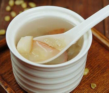 原料:銀耳一朵、白蘿卜一塊、雪梨一個,冰糖適量。
