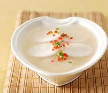 白蘿卜湯的主要原材料是白蘿卜,是在以白蘿卜為主的基礎(chǔ)上加入其他佐料熬制而成,白蘿卜湯有著豐富的營(yíng)養(yǎng)價(jià)值。作為白蘿卜湯的抓藥原材料的白蘿卜,是一種常見的蔬菜,生食熟食均可,其味略帶辛辣味?,F(xiàn)代研究認(rèn)為,白蘿卜含芥子油、淀粉酶和粗纖維,具有促進(jìn)消化,增強(qiáng)食欲,加快胃腸蠕動(dòng)和止咳化痰的作用。中醫(yī)理論也認(rèn)為該品味辛甘,性涼,入肺胃經(jīng),為食療佳品,可以治療或輔助治療多種疾病,本草綱目稱之為“蔬中最有利者”。所以,白蘿卜在臨床實(shí)踐中有一定的藥用價(jià)值。如今,“如皋蘿卜”憑著自身皮薄、肉嫩、多汁,味甘不辣,木質(zhì)素少,已經(jīng)蜚聲海內(nèi)外。