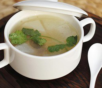 白蘿卜湯不僅味道鮮美,營(yíng)養(yǎng)豐富,還具有藥用價(jià)值與食療價(jià)值。白蘿卜湯可以起到止咳化痰的作用。如果在白蘿卜湯中加入蜂蜜。止咳化痰的效果會(huì)更佳。白蘿卜,有健胃消食、化痰止咳的作用,而蜂蜜則是潤(rùn)燥、養(yǎng)肺、益氣之佳品,并對(duì)感冒發(fā)熱、咽喉腫痛、風(fēng)濕關(guān)節(jié)痛有輔助療效。由于白蘿卜和蜂蜜都有潤(rùn)肺、止咳的作用,將白蘿卜制成燉盅灌入蜂蜜,經(jīng)清蒸燉制后,常食可以治療冬季干咳,還對(duì)便秘者有潤(rùn)腸通便之效。