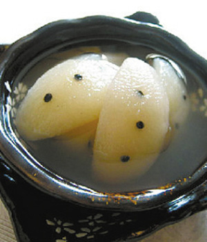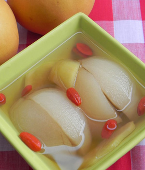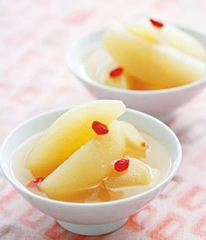 而梨甘涼微酸,養(yǎng)陰清熱,潤(rùn)肺止咳,對(duì)熱病津傷,口渴便秘,陰虛肺燥的咳嗽,喘促氣急,咽干音啞等癥狀尤為適宜。古人認(rèn)為梨生吃可以清熱,熟吃可以滋陰。此外,梨含有大量維生素A,具有防癌作用。