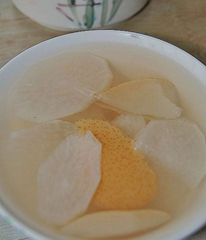 白蘿卜梨湯還能夠緩解咳嗽,這主要在于它對(duì)于脾胃的調(diào)理。中醫(yī)認(rèn)為,“脾為生痰之源,肺為貯痰之器”,是說(shuō)咳嗽與人的脾胃具有密切關(guān)系,所以,調(diào)整胃脾可以對(duì)咳嗽起到很好的治療作用。白蘿卜具有消食、理氣、化痰的功效,能很好的調(diào)理脾胃。而梨具有潤(rùn)肺清燥,止咳化痰的功效,尤其是梨皮,止咳的作用更好。因此,白蘿卜和梨配,是咳嗽病人很好的輔助治療食品,即使是伴有發(fā)熱的病人,也可以食用。