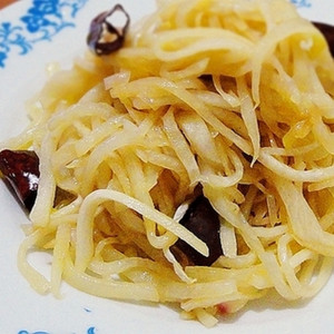 5、蘿卜絲軟后加一勺鹽,撒點胡椒粉,味精即可裝盤。