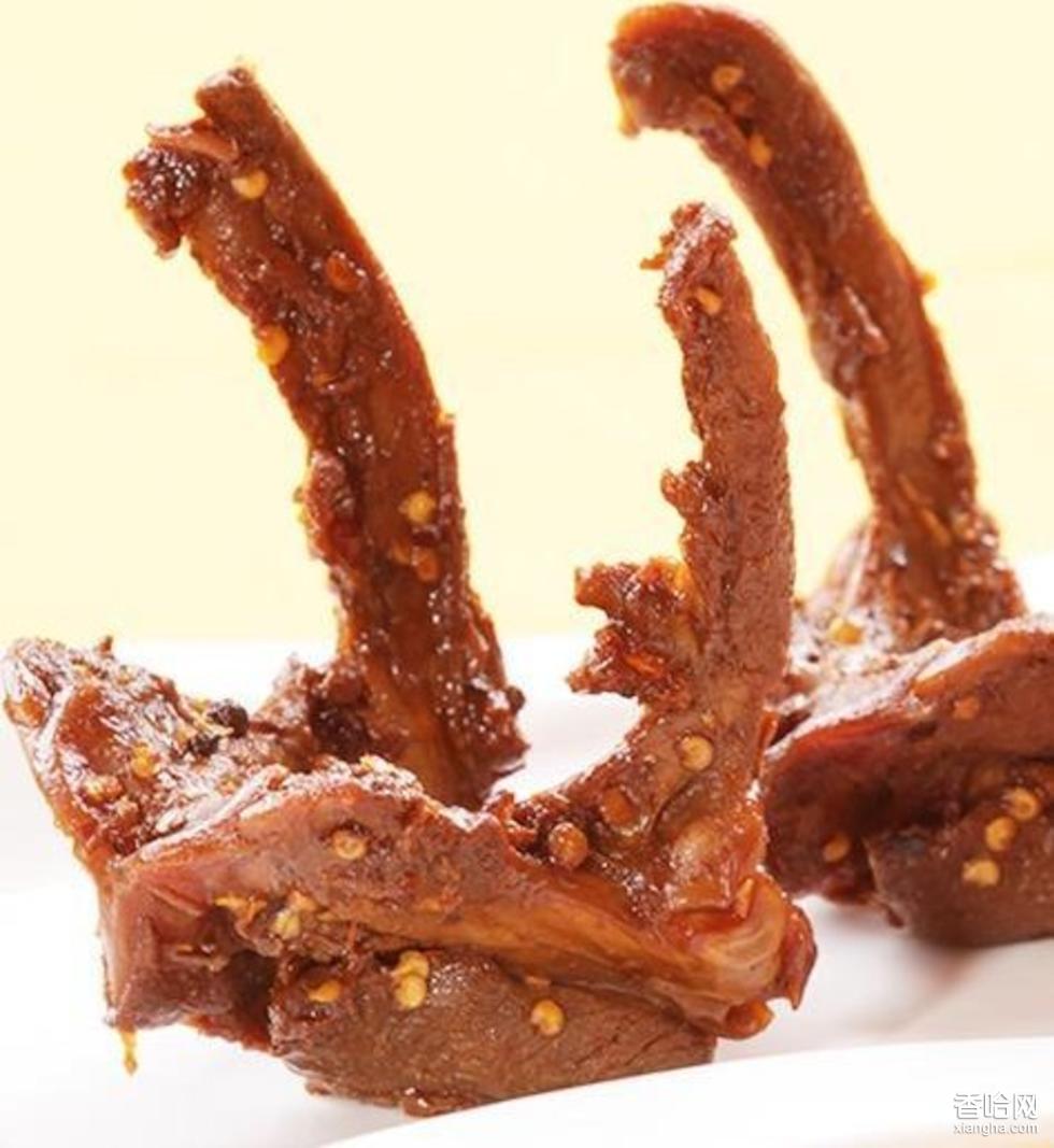 鴨頸絕對是武漢人對中華美食的新貢獻(xiàn),武漢人喜歡吃鴨脖子,因?yàn)樗蹲銐騽牛匚稛o窮。鴨脖子,本身食之無味,棄之可惜??墒墙?jīng)過用紅辣椒、花椒、八角等幾十種純天然香料進(jìn)行精心烹制料理之后就完全不一樣了,再剁成一節(jié)一節(jié),大小剛好能在嘴巴里自由轉(zhuǎn)動。鴨頸肉層次分明,頗有嚼勁,肉啃完后,接著吸吮骨節(jié)中間的骨髓,“滋溜”一聲,讓人覺得頗有成就感。照老一輩人的說法,鴨脖是活肉,鴨子整天尋吃覓食,纖長的頭頸一伸一縮,肌肉纖維鍛煉得非常有韌勁,所以味道格外的好鴨脖子所以能脫穎而出就在于它肉附于骨,鴨肝鴨腸之類屬于一口香,很易滿足,而鴨翅、鴨掌骨肉較易分離,吃起來沒有難度,只有鴨脖子骨肉相連,任你啃嚼吸嘬,也只能得其味之八九,讓人總是難以充分滿足,這便是鴨脖子的妙味所在了。