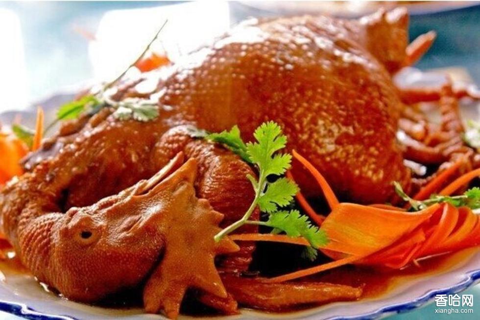 1、雞子經(jīng)宰殺、煺毛、洗凈,加工成布袋形,剔除爪骨,剁去雞嘴、膀尖和2/3的雞爪,使雞保持原狀,用清水洗凈,搌干。