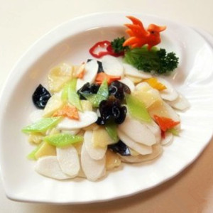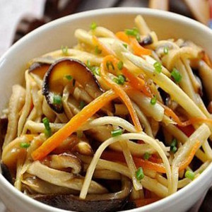 5、出鍋裝盤,用蔥絲裝飾即可。