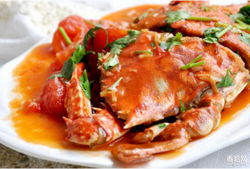 制作方法:1.活蟹宰殺洗凈后剁塊,切口處蘸干面粉,放植物油中炸至淺金黃色。2.西紅柿去皮、蒂,切滾刀塊。3.滑勺內(nèi)加植物油燒熱,放入蔥姜末炒香,加入西紅柿煸炒,隨加鹽、味精、白糖炒勻,再加入蟹塊炒勻,用少許水淀粉勾芡,淋香油,撒香菜末即成。