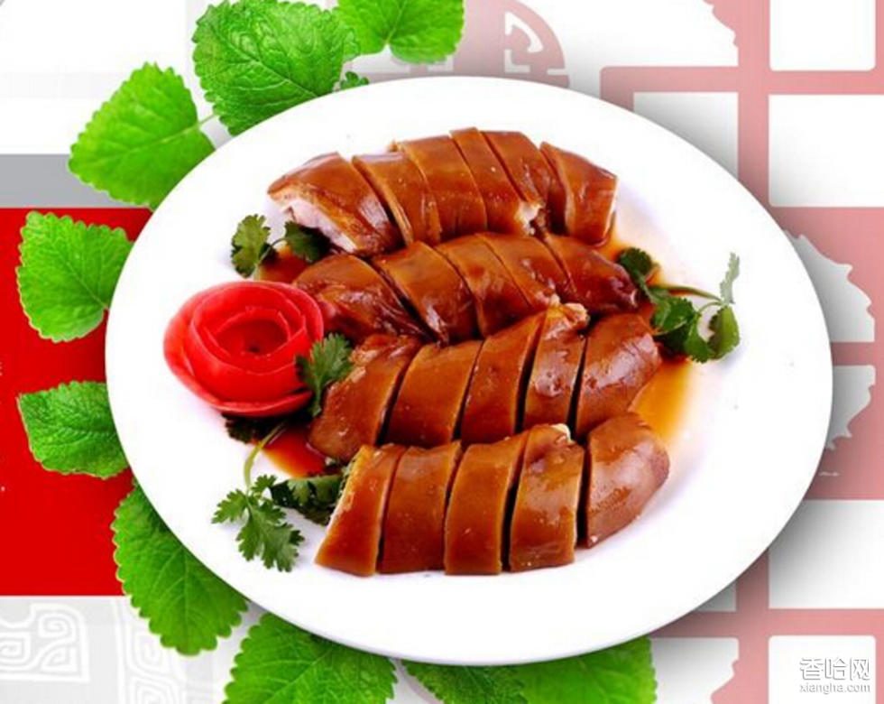 制作過程:1、把肉用鐵制的杵子叉起來,將肉皮在旺火上燎煳后,放進(jìn)80℃熱水中浸燙刮去煳皮。之后用開水煮至8成熟撈出,在肉上抹以蛋清糊(用蛋清和適量淀粉攪拌而成),放入200℃烤箱內(nèi)烤至紅色,再翻烤30分鐘取出,將煳皮刮去。2、將烤好的瘦肉、肥肉、肉皮分別切成長(zhǎng)6厘米寬12厘米的塊,排骨剁成6厘米的段,分別擺在盤中。3、蔥白、花椒鹽、蘿卜條、甜面醬分裝在小碟內(nèi),與烤肉一起上桌即成。用春餅、荷葉餅卷食。