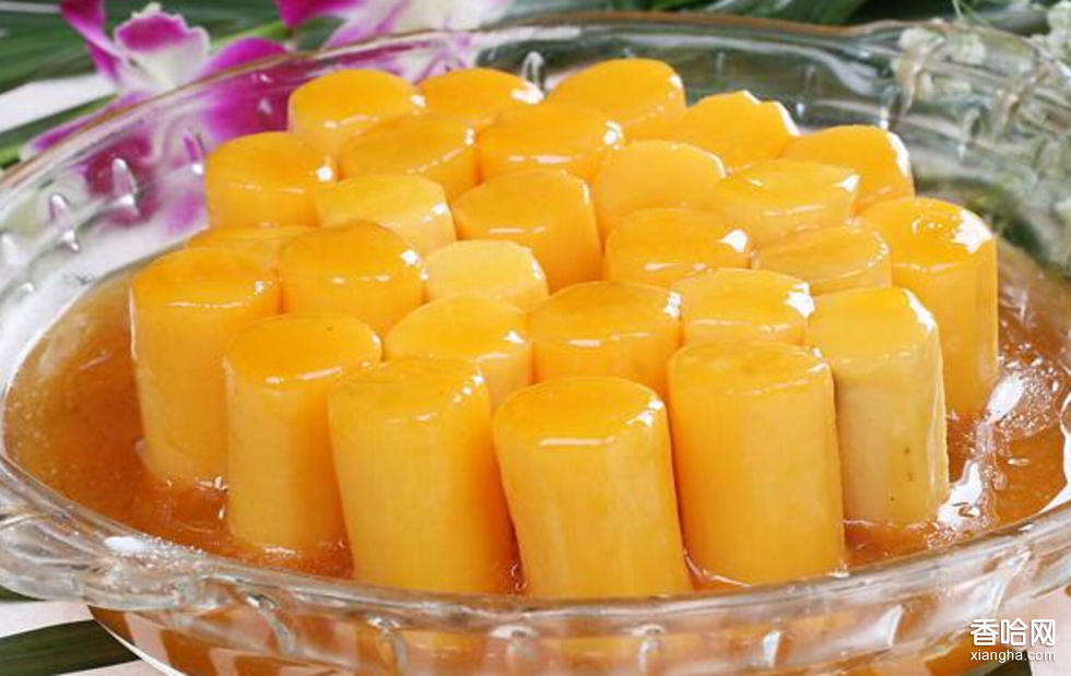 做法:1.將山藥刮去外皮,用清水洗凈。將鴨梨、蘋果剝?nèi)テ?,切開,除去核,然后切成小叮將金糕瓜仁瓜條青梅均切成2分見方的小叮用水將葡萄干洗凈,橫切成兩半。2.鍋中注入清水,上火燒開,放入山藥,氽一下?lián)瞥觯谐砷L3寸的段。沙鍋中放入白糖,注入300克清水,上火燒開放入山藥段鴨梨丁蘋果丁,移在微火上煨約20分鐘當(dāng)山藥糯爛時(shí)撈出山藥段整齊地碼入圓盤中,上面撒上各種果料叮。3.將煨山藥的糖汁過細(xì)羅,注入另一鍋中,加入桂花醬,將汁熬濃,澆在山藥上即成。