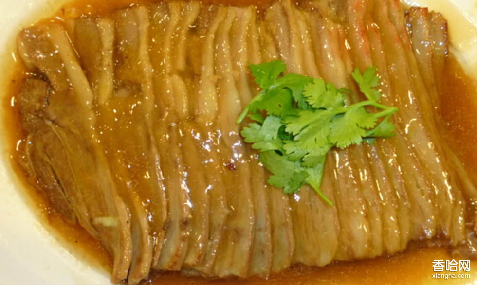 做法:將羊腰窩肉在冷水中泡透,洗凈,放在開水鍋中煮透,取出洗凈,再放入湯鍋內(nèi)煮熟,撈出晾涼,撥去云皮,切成長13厘米、粗2.3厘米的條,整齊地?cái)[入盤內(nèi)。將炒鍋置于微火上,加入芝麻油,白糖、八角攪炒,待白糖變色時(shí)放入蔥、姜絲、蒜片繼續(xù)攪炒,然后加入清湯、醬油、紹酒、精鹽、白糖,倒入羊肉條,用旺火燒沸后移至微火煨,待湯煨剩一半時(shí),挑出八角不用,加入味精、濕淀粉勾芡,淋上芝麻油,顛勺把羊肉條全部翻過來(保持完整),倒入盤內(nèi)即成。