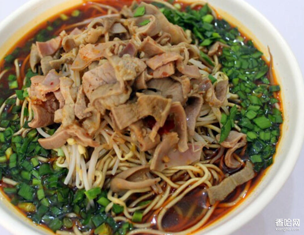 一般以牛羊肉為原料,配以辣椒、茴香、胡椒、花椒、八角、桂皮等20多種作料炒制而成。其做法是:精選肥瘦適中的嫩牛羊肉,切成葡萄大小的方??;將干紅辣椒入油中炸至焦黃,色味被收入油中時(shí),撈出控油、晾脆,以刀拍碎備用;將切好之肉丁入油,反復(fù)煸炒,至肉塊定形后,將拍過的辣椒及精鹽等調(diào)味品適時(shí)放入,以文火煎掉肉中水分,待肉丁著色均勻呈棗紅色時(shí),離火降溫。成品臊子精在工藝,巧在火候,香而不膩、辣而不辛、咸而不澀,色如瑪瑙,晶瑩悅目,味道鮮美。其面條制作取自當(dāng)?shù)厥a(chǎn)的優(yōu)質(zhì)小麥精粉,按比例用食鹽、水加以攪拌,和成面團(tuán),反復(fù)揉搓,至筋道,再經(jīng)過反復(fù)揉條摔板,直至其觸摸如絲綢、手扯有拉力、提起似瀑布、板時(shí)噼啪作響即可。這樣的面條寬窄有致、均勻好看,二兩面,三根條,板拉扯直后可達(dá)四丈有余。板后面條即入鍋、起碗,放幾根青菜,澆上臊子,真?zhèn)€是白面條、綠菜葉、紅臊子,入口來“辣酥酥,香噴噴”,清香沁人心脾,令人回味無窮。