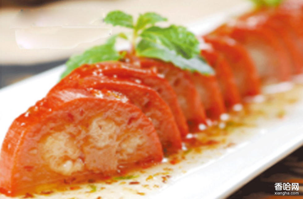 蜜汁江米藕原名熟灌藕,是一道歷史悠久的漢族傳統(tǒng)甜點(diǎn),屬于豫菜系。據(jù)傳熟灌藕始于元代,后經(jīng)歷代廚師不斷改進(jìn),成為“蜜汁江米藕”。此菜選用豫西南社旗縣唐莊白蓮藕,經(jīng)煮、釀、蒸、蜜炙而成,成菜軟糯香甜,為筵席名饌。唐莊的白蓮藕個(gè)大節(jié)長,皮薄肉細(xì),晶瑩如玉,甘美可口。一般的藕切開后都有許多細(xì)絲相連,牽扯不斷,故有“藕斷絲連”的成語,而唐莊白蓮藕卻切削刮剁都不見一絲,為藕中奇品。清代曾列為貢品,是不可多得的烹飪原料。