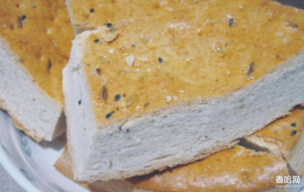 做法:1、按季節(jié)掌握水溫,先和成死面塊,放在案頭上用木杠壓,邊折邊壓,壓勻盤到,然后切成兩塊,分別加入酵面和堿水再揉壓,視面的軟硬程度,如面軟可加些干面再壓,直至面光色潤,酵面均勻時(shí),用溫布蓋嚴(yán)盤性。2、把面塊分成每塊重約600g的面劑,推搟成直徑約22cm,厚3cm的圓形餅,上鏊勤翻轉(zhuǎn),俗稱“三翻六轉(zhuǎn)”,烙得火均勻,皮色微鼓時(shí)即熟,周圍并有菊花形的毛邊。3、博望鍋盔用發(fā)酵面、干面反復(fù)盤揉,做成盾牌形狀上鍋炕,待兩面凝結(jié)后,把數(shù)個(gè)鍋盔疊立起來放在鍋內(nèi),不加水,用文火蒸烤至熟??竞玫腻伩唤共缓?,具有生面的顏色、熟饃的味道。