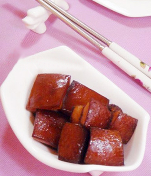 【油炸】經(jīng)過油炸的五花肉,可以將多余的油脂逼出來,又能固定肉的外形和鎖住肉汁,增加了肉的香味,但要避免炸過頭,吃起來口感變差。