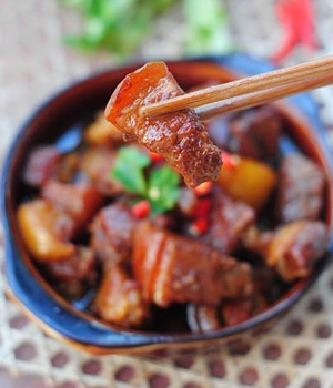 【加入瘦肉一起燉煮】在做五花肉的時候添加一些去皮瘦肉,可以起到吸收部分油脂的作用。