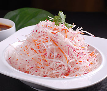 白蘿卜無(wú)論是生吃還是熟吃都有良好的功效,生吃搭配梨汁、姜汁飲用有不同的效果,對(duì)口腔潰瘍、扁桃體炎、痰多咳嗽、解酒保肝等有一定功效;與羊肉、鯽魚(yú)等搭配熟吃則有助于發(fā)汗抗寒、預(yù)防感冒。由于白蘿卜性涼,秋冬季節(jié)進(jìn)食時(shí)最好搭配一定溫?zé)嵝允巢氖秤?,以中和寒性,有助健康?