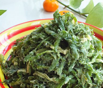主料:茼蒿(適量)、蒜瓣(適量)、面粉(適量)、玉米面(適量)、鹽(適量)、香油(適量)