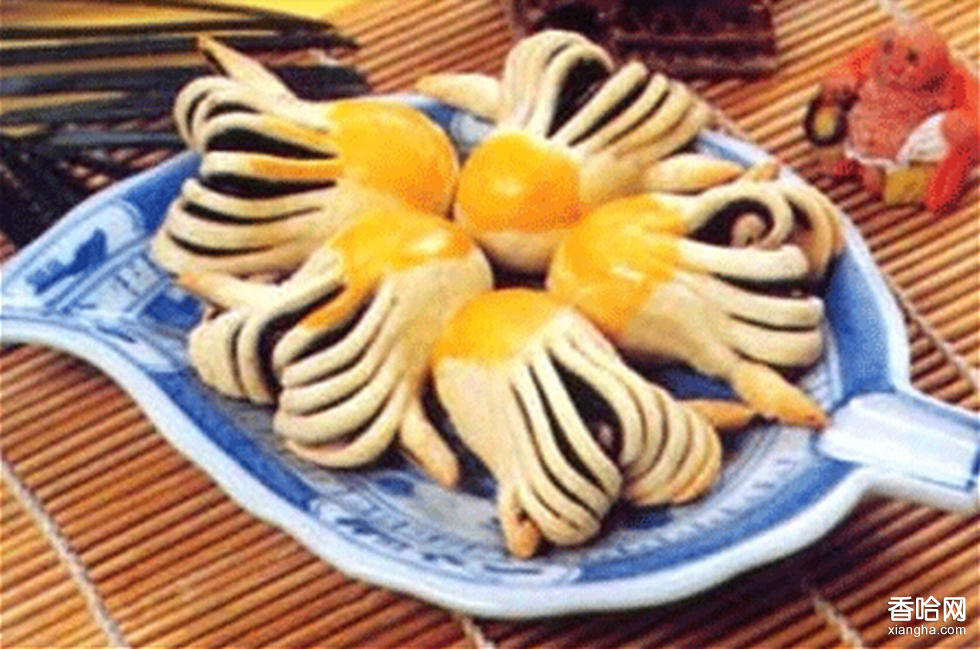 相傳1900年八國(guó)聯(lián)軍侵入北京,慈禧太后倉(cāng)惶出逃,后來(lái)在返京途中,路過(guò)陜州,即今天的三門峽市。那拉氏平常篤信佛祖,人稱老佛爺,但這位老佛爺卻不是吃素的,返京途中,到處要吃要喝,地方官伺候得她滿意的往往得到賞賜提升。當(dāng)時(shí)陜州的知州打聽(tīng)到這些行情,為了獻(xiàn)媚邀寵,使自己的官越做越大,就來(lái)了個(gè)“借花獻(xiàn)佛”,命令當(dāng)?shù)氐母呤置麖N,精心制作了一款造型別致的“水花佛手糖糕”敬獻(xiàn)給那拉氏食用。那拉氏一看那“佛手”,猶如無(wú)數(shù)精美的水花,頓覺(jué)喜從心來(lái)。因?yàn)槟抢蟿倓偨?jīng)歷了一次狼狽的逃難,險(xiǎn)些失去統(tǒng)治寶座,現(xiàn)在是驚魂稍定,原先的地位和權(quán)力依然保持如初,心中本就充滿了喜悅,這時(shí)又見(jiàn)到吉祥的佛手,好像在給她報(bào)喜,當(dāng)然喜不自勝,于是興高采烈地嘗了起來(lái)。果然風(fēng)味不同凡響,糖糕焦酥香軟,充溢著一股玫瑰的芳香,那拉氏不由得露出了滿意的笑容。她對(duì)陜州知州說(shuō)道:“卿用心良苦,朕自知之,為我佛如來(lái),特賜此饌制作者一件黃馬褂?!标冎葜菀彩艿搅颂厥舛饔觥=?jīng)那拉氏親口一嘗,水花佛手糖糕名聲大振,日益流行起來(lái),至今仍在豫西一帶享有盛名。